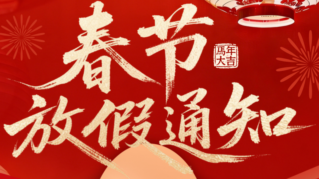 尊敬的客户及合作伙伴: 2026年春节即将来临,感谢大家的支持与信任! 放假时间:2月13日至2月21日放假(农历腊月二十六至正月初五),2月22日正月初六开工大吉! 放假期间暂停收发货工作,请供应商提前安排好发货时间,如期间导致货物丢失,兹司概不负责。 放假期间若您有工作对接事宜,请拨打电话:13590240363/13590373100,由此给您带来不便,敬请谅解! 策马迎春,共赴新程。感谢合作伙伴的携手同行,愿我们在2026年继续精诚合作;祝大家新年:幸福安康,万事胜意!